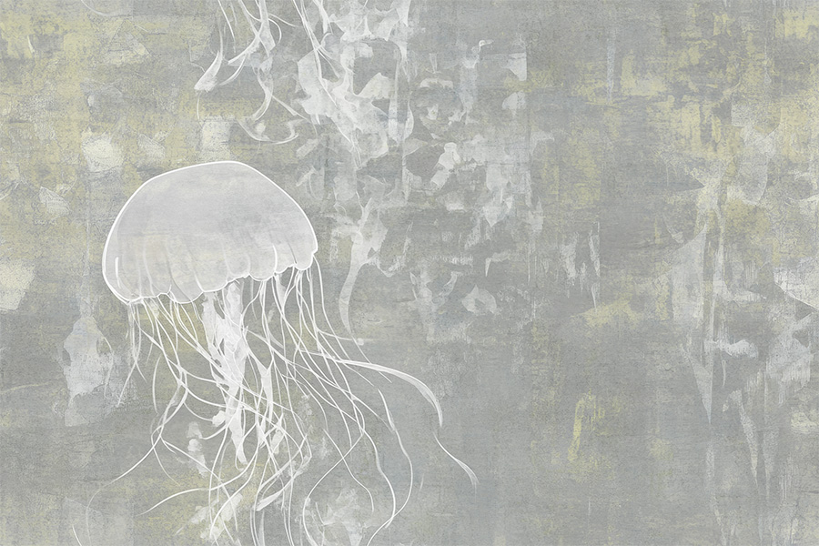 "Abyssal Dance" in the "Shadow Reflections" coloring transforms walls into an enigmatic and evocative work of art. The stylized jellyfish, with its flowing tentacles, moves in an environment of blurred textures and deep tones, creating an effect of movement and mystery. This wallpaper is perfect for those seeking an environment with an abyssal atmosphere and a touch of artistic originality.