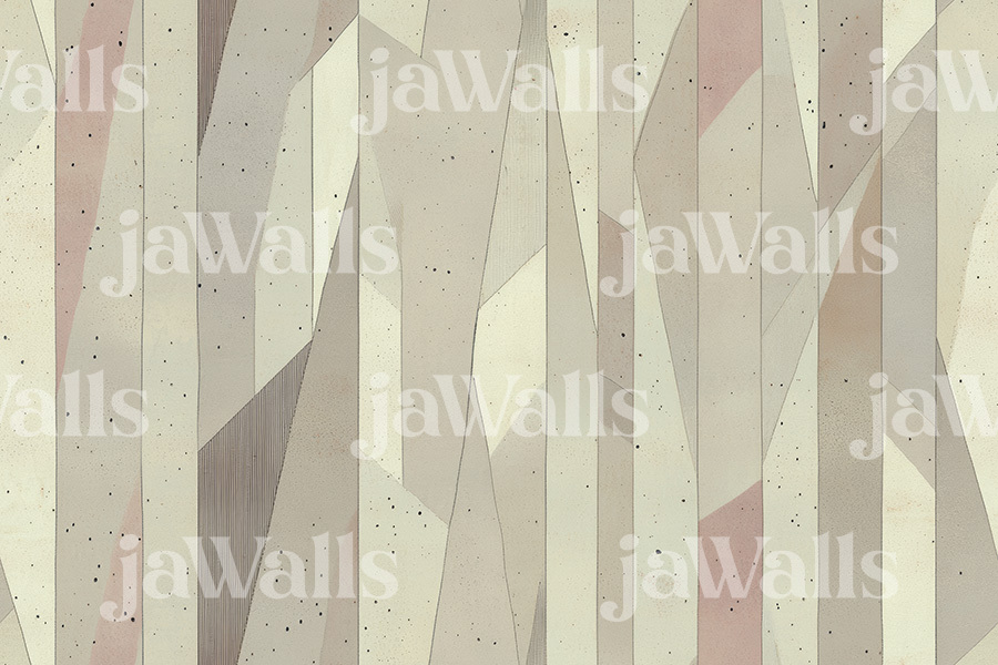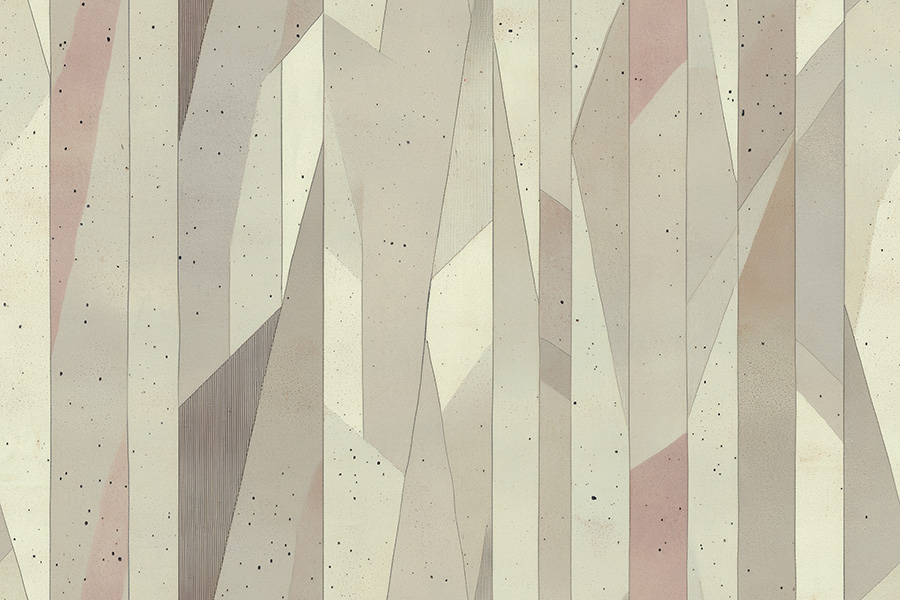 Ecliptic Array transforms architectural abstraction into a rhythmic landscape of sharp, rising forms. Diamonds and rectangles are stacked with intention, echoing a stylized skyline infused with textures like etched brass, fossil inlay, and ceramic matte. The pale hue breathes life into the rigid composition, resulting in a wallcovering that feels both meditative and assertive. Balanced between precision and softness, this design elevates interiors with sculptural nuance and timeless graphic power.