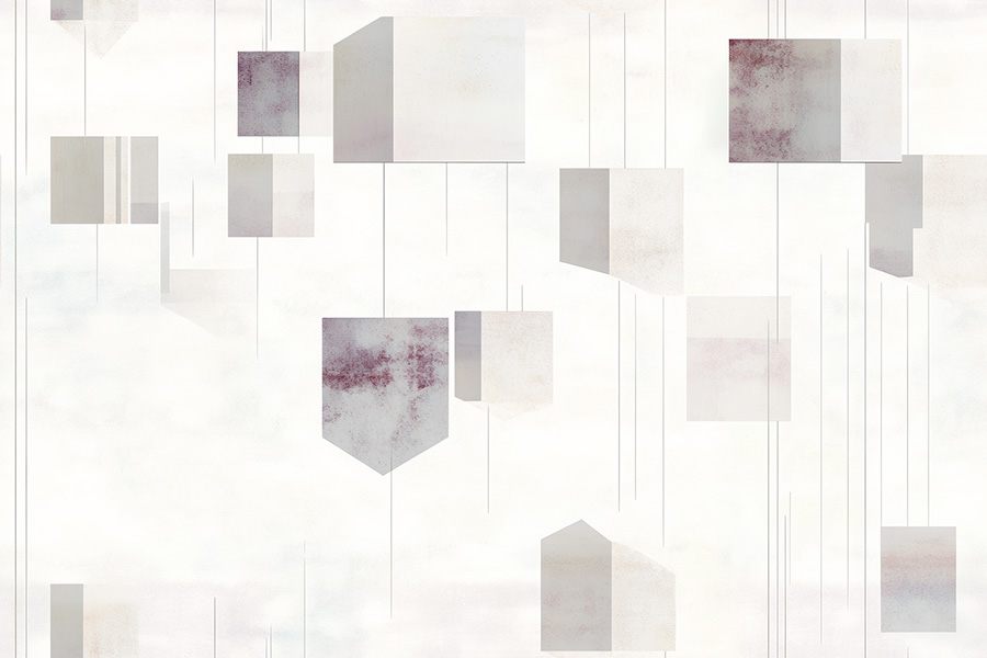 Geometric Void explores the architectural beauty of suspended grids and modular structures. The interplay of deep grays with subtle, bold red accents creates a striking visual balance. The surface textures of dusty marble, oxidized cement, and smoothed limestone come together to form a sophisticated pattern that is both rhythmic and spatial. The infinite grid and the delicate light gaps between each module bring a sense of movement and depth to the design, making it a powerful visual statement for contemporary spaces.