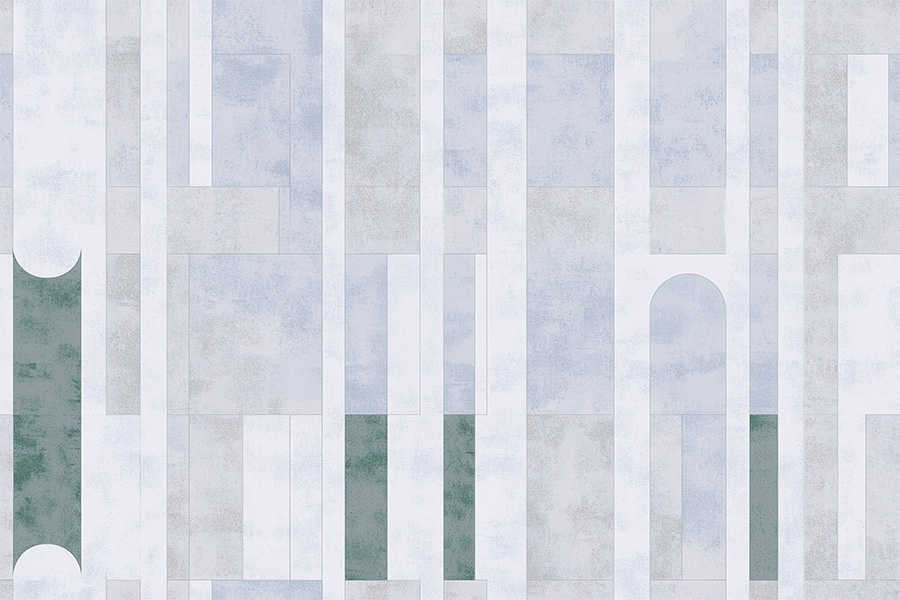 Aeriform Array explores modular repetition through a language of industrial abstraction. The use of vents, openings, and sharp shadows creates a system of voids and densities, enriched by the expressive accent tones of Oxide Bloom—a subtle play of dusty green and oxidized red that breathes life into the grid.