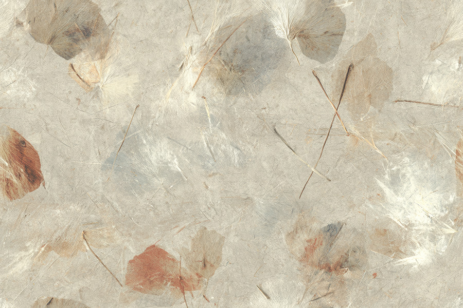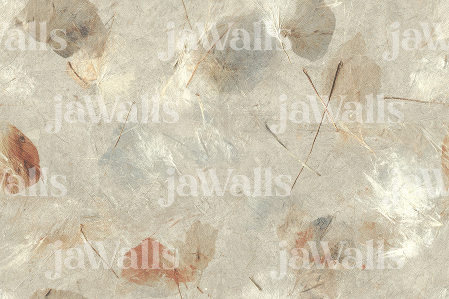 The Botanical Trace wallpaper design offers a unique and intimate connection with nature, bringing the delicate beauty of pressed botanical elements into your living space. Inspired by the art of preserving natural ephemera, this design features subtle imprints of leaves, flower petals, and stems, gently embedded into a fibrous handmade paper texture. The soft parchment beige background with translucent layers enhances the delicate details of the plant life, while the faint olive, dusty lavender, and golden ochre tones, now unified by the overall ochre influence, create a harmonious and sophisticated aesthetic. The papery, fibrous quality of the texture, complete with visible strands and irregular edges, adds a tactile dimension to the walls, inviting a sense of natural authenticity. The gentle rhythm in the arrangement of the botanical elements evokes a feeling of nature frozen in time, making this wallpaper a timeless addition to any interior. It’s more than just a wall covering; it’s a celebration of the delicate artistry of the natural world.