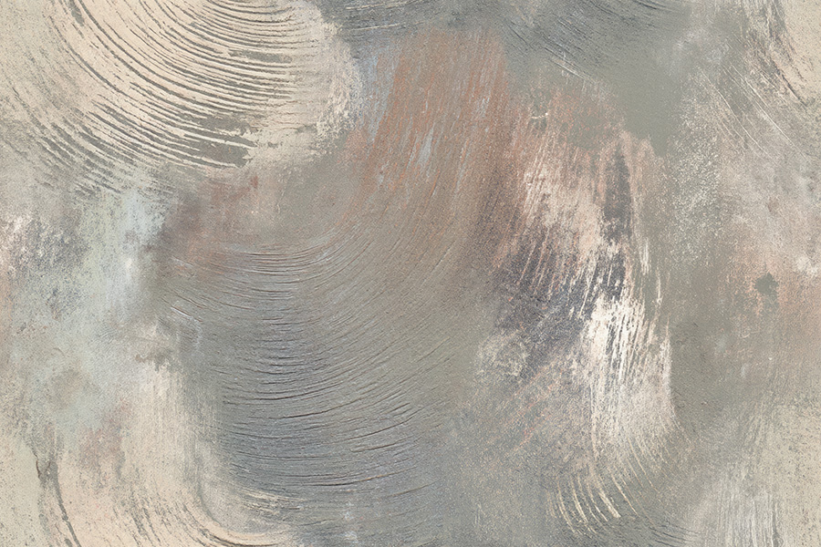 A textured plaster-inspired surface reminiscent of Italian decorative stucco, with swirling, feathered strokes and soft tonal variations. The design mimics hand-applied layers, with delicate trails and shadows. The palette of soft limestone, pale taupe, and hints of warm grey is now reimagined in a luminous gradient of twilight sienna. A subtle iridescence suggests fine marble dust. The texture is simultaneously rustic and refined, offering quiet elegance and timeless materiality.