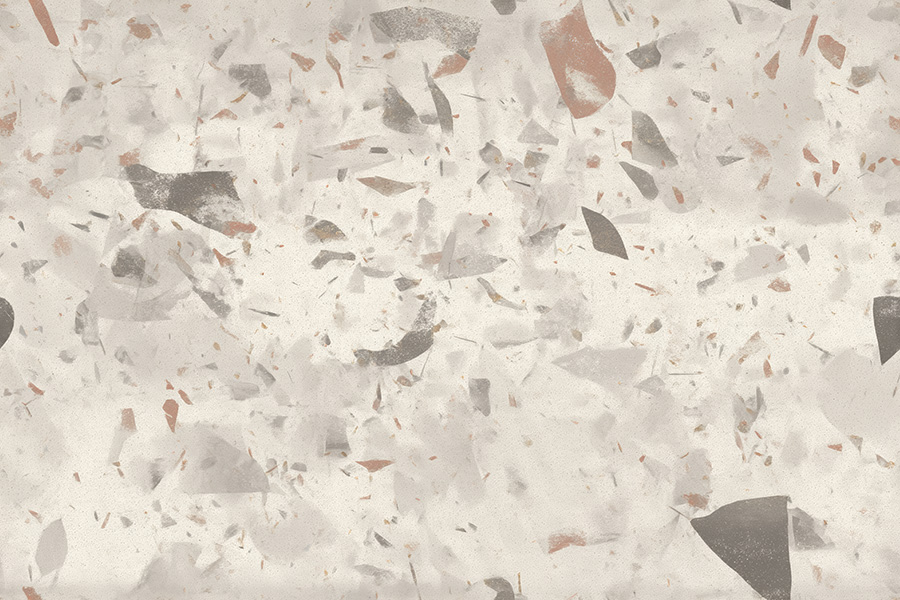 A continuous design featuring a flat illustration style mosaic pattern, set against a pristine white background. Muted pink and gray fragments are interspersed with bold black shapes, creating a modern, high-resolution visual effect.
