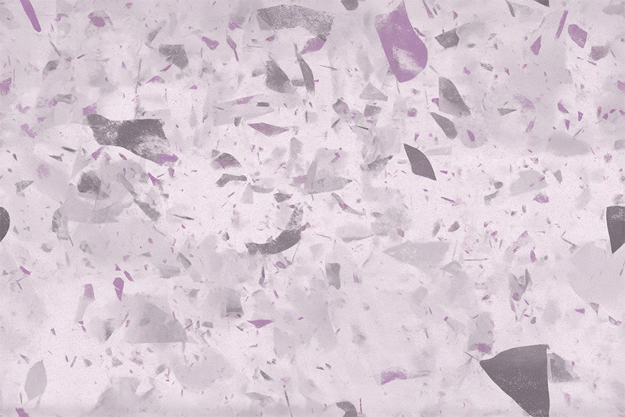 A continuous design featuring a flat illustration style mosaic pattern, set against a pristine white background. Muted pink and gray fragments are interspersed with bold black shapes, creating a modern, high-resolution visual effect.