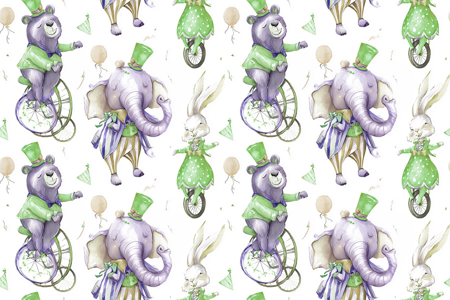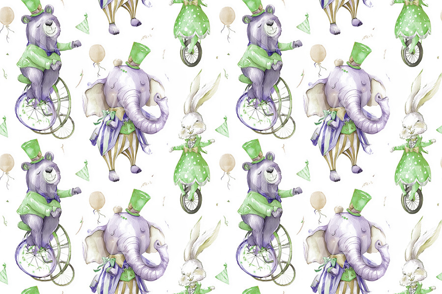 A delightful world of wonder unfolds through this imaginative wallpaper design, featuring an enchanting cast of circus animals in playful harmony. A bear rides a unicycle with gleeful balance, a rabbit emerges from a magician's top hat, and a cheerful elephant waves its grand tail, all beneath the whimsical silhouette of a circus tent. The arrangement dances across the surface in seamless motion, evoking the charm of vintage storybooks and timeless childhood dreams. Every character is drawn with a soft, handcrafted touch, inviting curiosity and storytelling. This pattern isn’t just decorative—it’s narrative. A visual tale filled with mischief, magic, and the gentle rhythm of fantasy, perfect for sparking imagination in any child’s room.