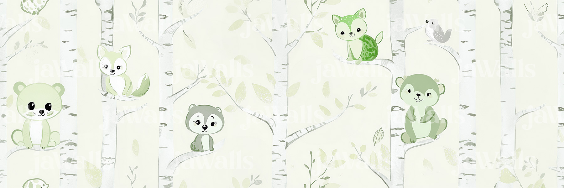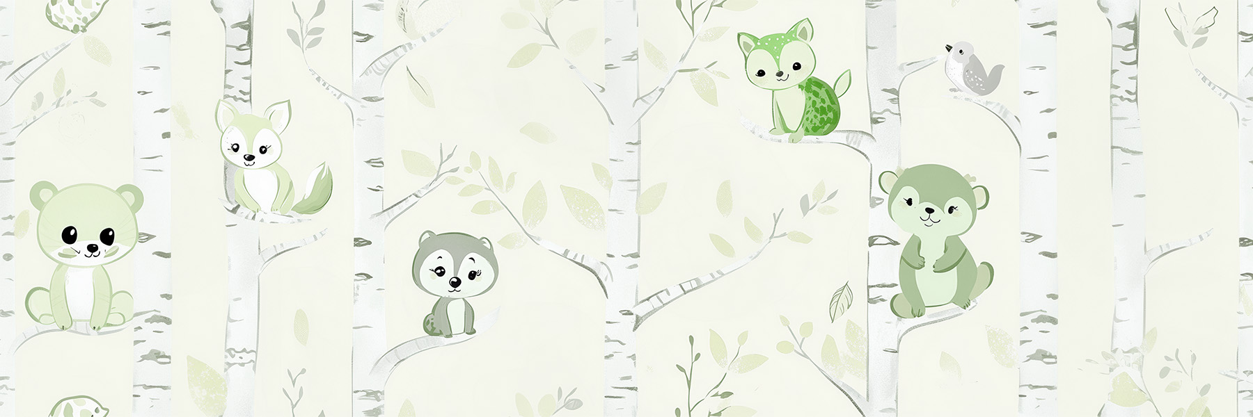 This sophisticated reinterpretation wraps our beloved woodland scene in nature's most soothing palette. The Mossy Shimmer colorway features warm beige animals with sage-green glitter accents on creamy birch trees, creating a design that's both organic and enchanting. Unlike traditional nursery patterns, this version appeals to design-conscious parents with its muted, gender-neutral tones while still captivating children through subtle sparkle effects. The seamless vector pattern ensures the forest continues endlessly, with hidden details like glittering "dew drops" on leaves and tiny mushroom sparkles rewarding curious eyes.