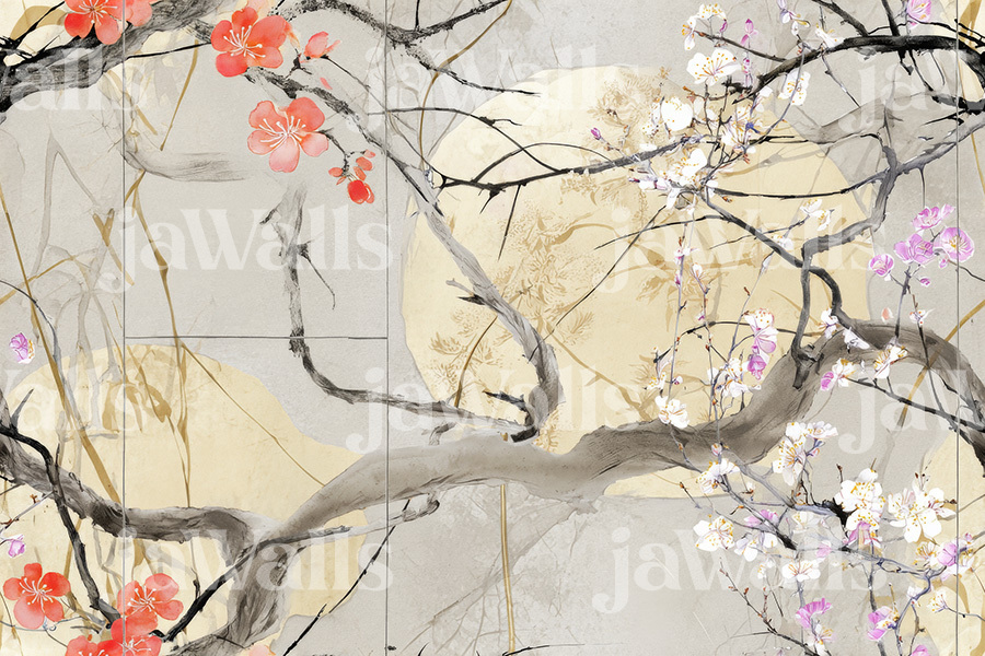 "Blossom Lattice" is not just wallpaper, but a statement of style and precision. Its high-definition design captures every petal and branch with impeccable clarity, typical of traditional Chinese art. The strategic use of gold elevates the composition, offering a luminous focal point that enhances the beauty of the blossoms. Ideal for luxury interiors that aspire to a clean yet meaningful aesthetic. This wall art is a tribute to timeless beauty and masterful craftsmanship.
