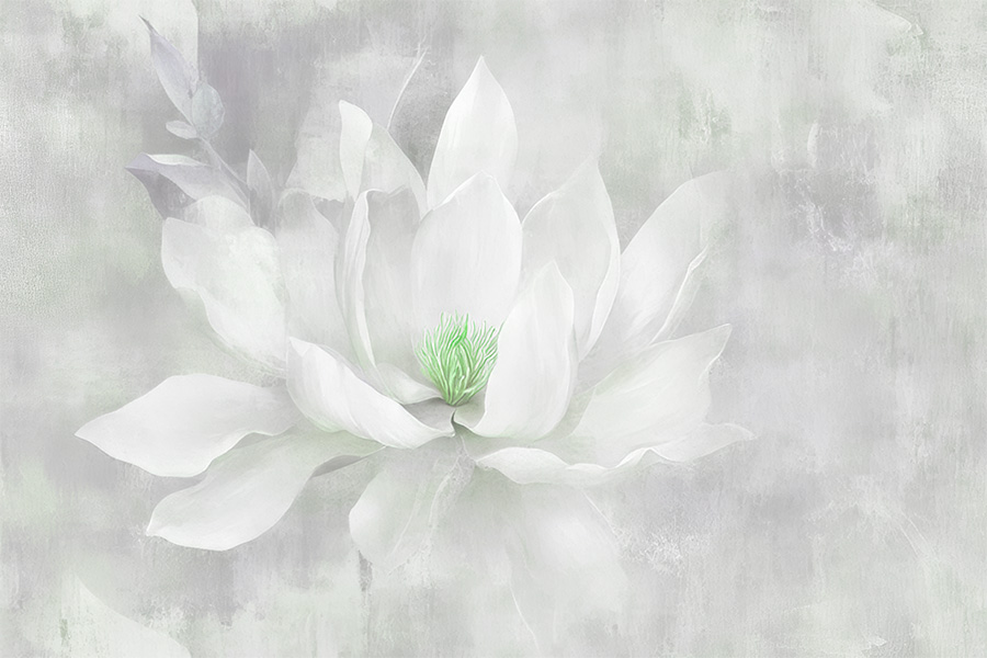 "Sublime Magnolia" is more than just wallpaper; it's a sensory experience that transforms walls into a work of art. Its slightly mottled texture and the watercolor effect of the flower, with the jade heart, create a visual depth that captures the eye and relaxes the mind. Perfect for those who love classic style and want a touch of elegant and original nature, this wallpaper easily matches different types of furniture, from minimalist to contemporary. Imagine transforming your bedroom into a haven of peace or your living room into an oasis of beauty, where the walls tell a story of elegance, tranquility and originality.