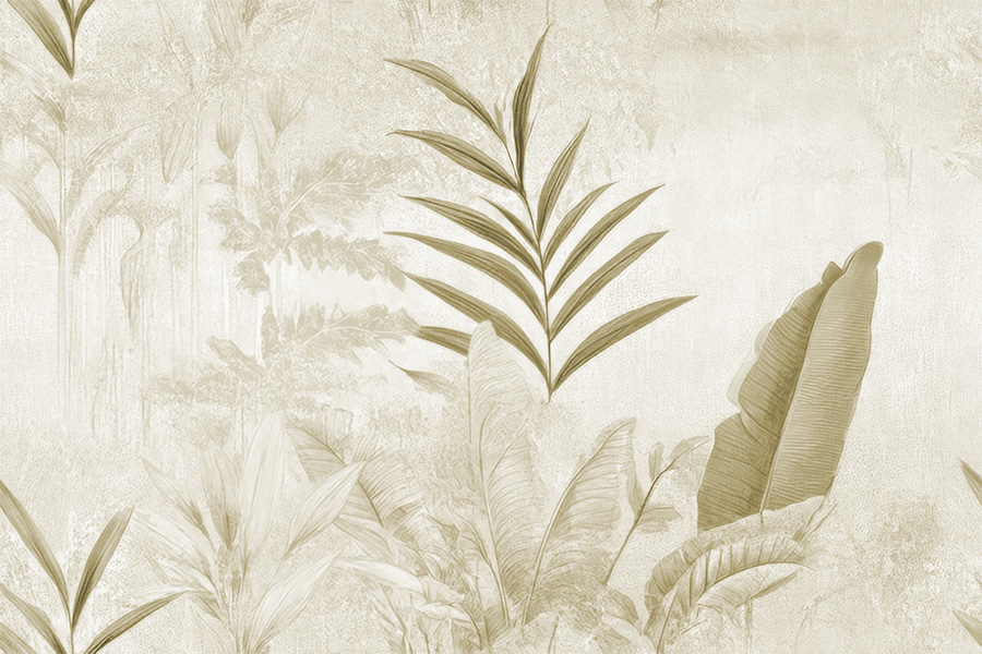 Transform your interiors into a tropical oasis shrouded in mystery with our "Tropical Retreat" wallpaper. This exclusive design captures the exotic beauty of tropical vegetation, with its palm leaves and other exotic plants that seem to emerge from an ancient mirage. The "Ancient Mirage" coloring, with its shades of beige and light gray, adds a touch of elegance and originality, making this wallpaper ideal for those who want to create a relaxing and enveloping atmosphere.