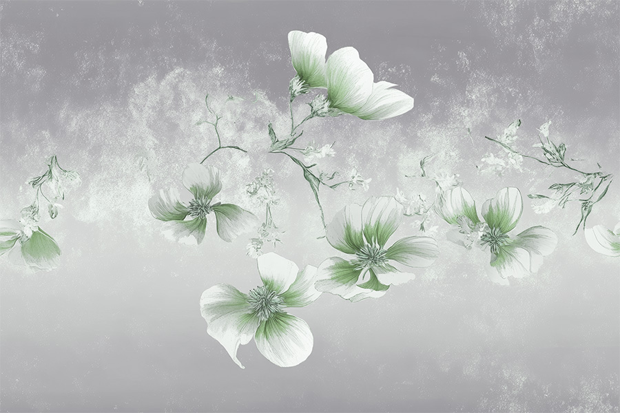 Imagine stepping into an enchanted garden, where nature and delicacy merge into a harmonious embrace. Whispering Petals wallpaper transforms this vision into reality, bringing a touch of elegance and refinement to any environment. The design, with its suspended corollas and petals that blend from white to vibrant green, creates a relaxing and enveloping atmosphere, ideal for those who want a haven of peace and beauty.