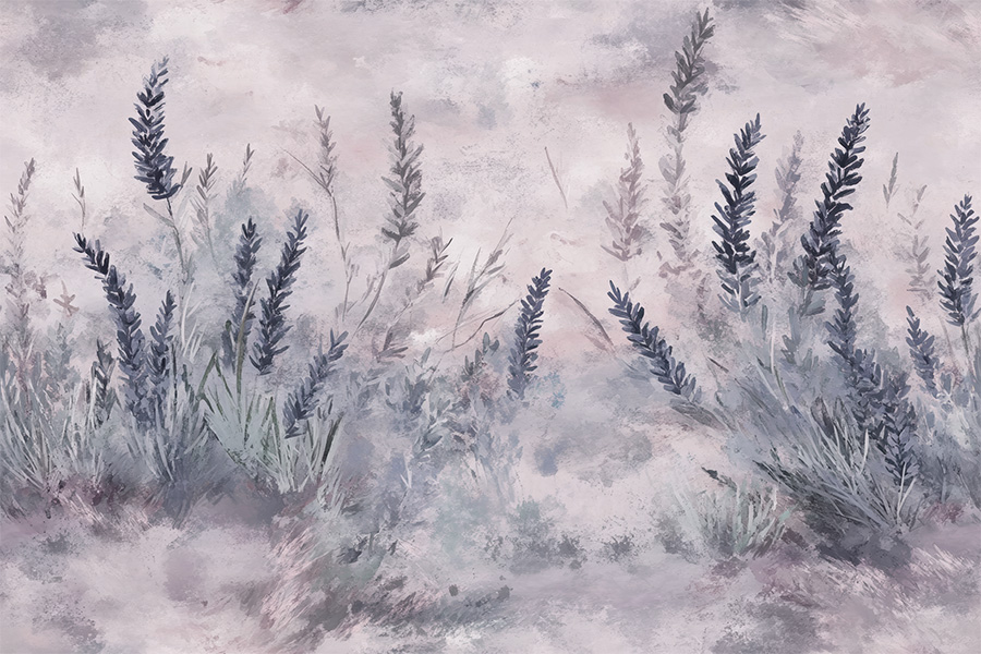 Lavender Fields is a wallpaper that captures the serene beauty of lavender fields enveloped in an amethyst mist. The delicate shapes of the plants and the nuanced colors create an atmosphere of quiet and refinement, ideal for environments that seek a touch of relaxing nature with an aura of mystery. The cool color palette, with shades of lavender, pearl gray and amethyst, gives a sense of serenity and depth.